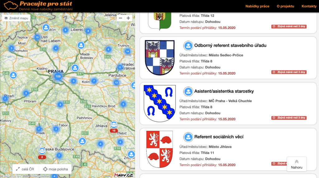 Když se v poslední době díky koronaviru zastavil život v celé zemi, přemýšleli jsme, jak můžeme přiložit ruku k dílu. Roušky šít neumíme, 3D tiskárny na tvorbu štítů nemáme a s vařením pro lidi bychom, vzhledem k mému kuchařskému umění, také neuspěli. Když jsme ovšem zaznamenali nárůst počtu nezaměstnaných a poměrně šílený výhled “nezaměstnanosti” na celém světě, přemýšleli jsme, jak bychom lidem jednoduše a přehledně umožnili sledovat nabídky zaměstnání vyhlášené městy a obcemi. Pak jsme za 30 dní, s podporou našich IT kolegů z www.id-sign.com, postavili tento nový inzertní portál.