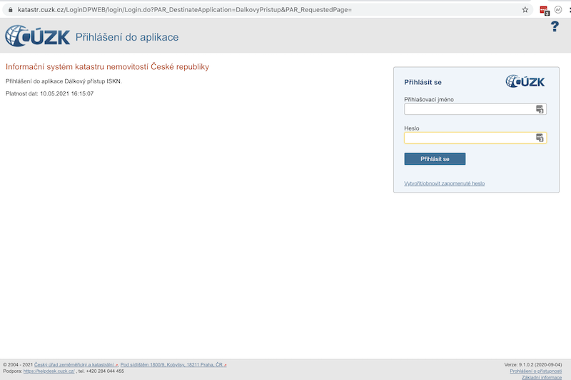 Teď už si stačí vytvořit heslo a je hotovo. K tomu je nutné navštívit, alespoň jedenkrát, stránku dálkového přístupu: https://www.cuzk.cz/aplikace-dp a kliknout na “Přístup pro registrované uživatele” a pak na “Vytvořit/obnovit zapomenuté heslo”. Do políček uvedete přihlašovací jméno a registrační email, který jste uvedli v žádosti. Na email vám pak přijde odkaz na vytvoření nového hesla. Heslo si vytvoříte, uložíte a je to. Pro potvrzení nicméně budete potřebovat jednorázový kód, který vám přijde smskou na telefonní číslo uvedené v žádosti.